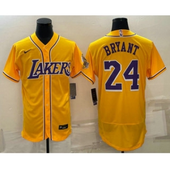 Men's Los Angeles Lakers #24 Kobe Bryant Yellow Stitched Flex Base Nike Baseball Jersey