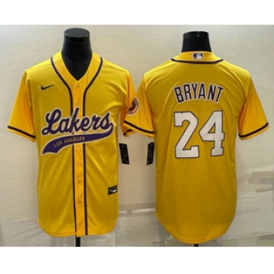 Men's Los Angeles Lakers #24 Kobe Bryant Yellow With Cool Base Stitched Baseball Jersey