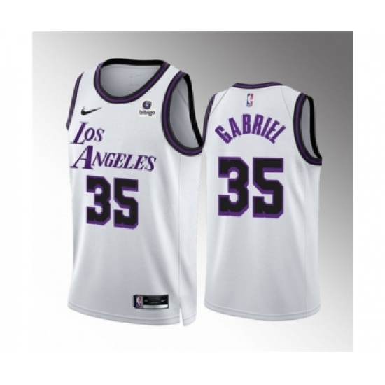 Men's Los Angeles Lakers #35 Wenyen Gabriel White City Edition Stitched Basketball Jersey