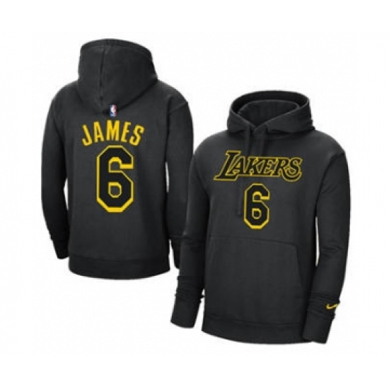 >Men's Los Angeles Lakers #6 LeBron James 2021 Black Pullover Basketball Hoodie