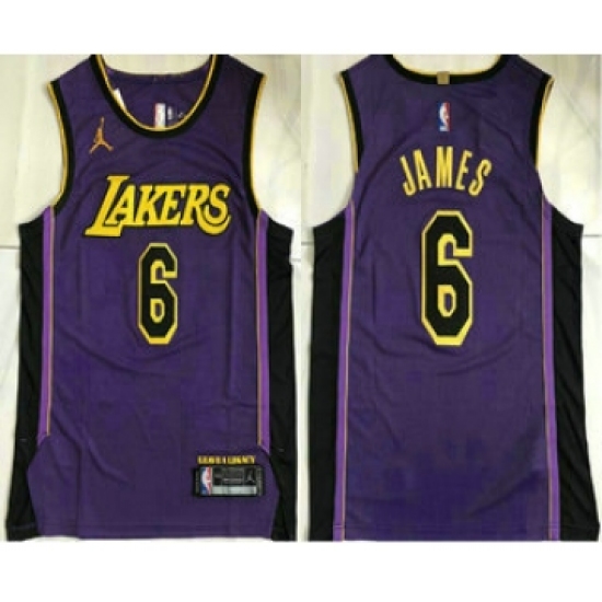 Men's Los Angeles Lakers #6 LeBron James Purple 2022 Jordan AU Stitched Jersey