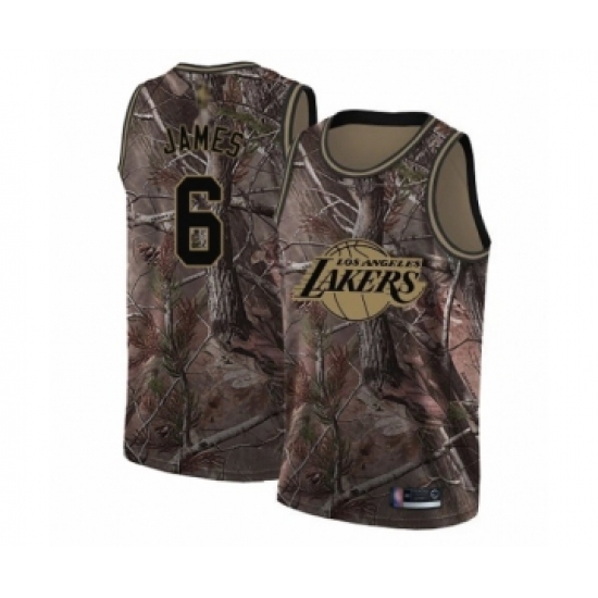 >Men's Los Angeles Lakers #6 LeBron James Swingman Camo Realtree Collection Basketball Jersey