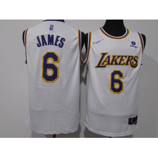 >Men's Los Angeles Lakers #6 LeBron James White Jersey