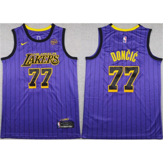 Men's Los Angeles Lakers #77 Luka Doncic Purple 2025 Stitched Basketball Jersey