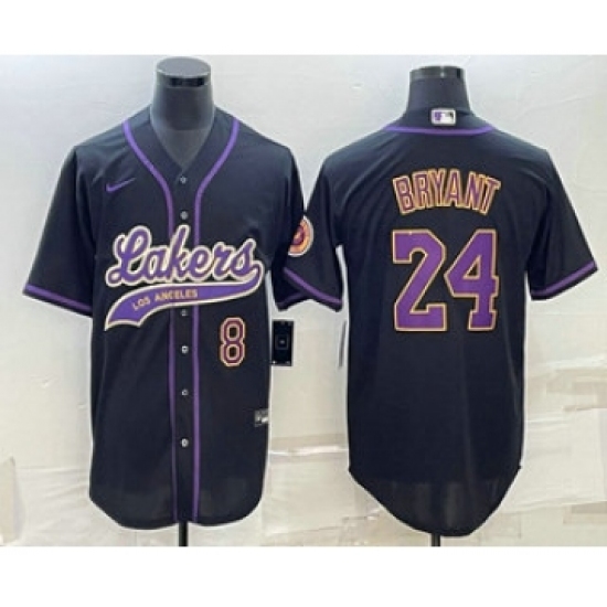 Men's Los Angeles Lakers #8 #24 Kobe Bryant Number Black With Cool Base Stitched Baseball Jersey