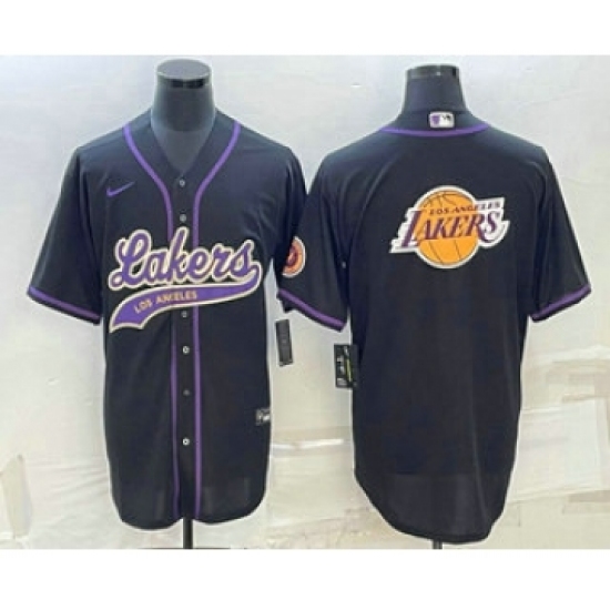 Men's Los Angeles Lakers Black Team Big Logo Cool Base Stitched Baseball Jersey