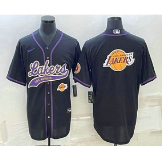 Men's Los Angeles Lakers Black Team Big Logo With Cool Base Stitched Baseball Jersey