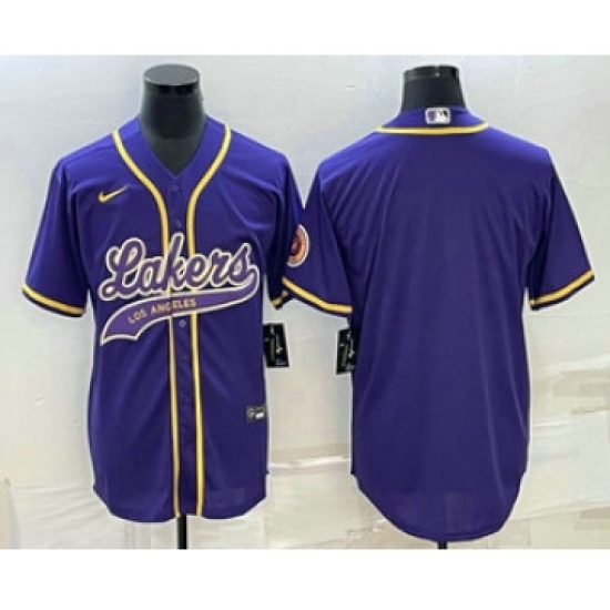Men's Los Angeles Lakers Purple Big Logo With Cool Base Stitched Baseball Jersey