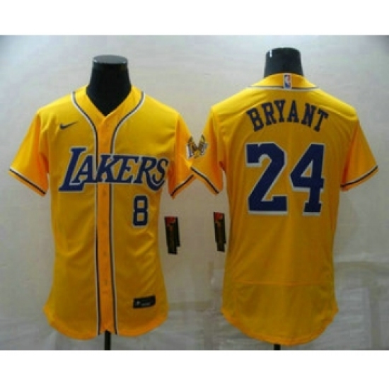 Men's Los Angeles Lakers Front #8 Back #24 Kobe Bryant Yellow Cool Base Stitched Baseball Jersey