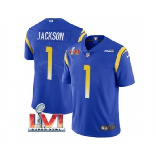 Men's Los Angeles Rams #1 Desean Jackson Royal 2022 Super Bowl LVI Vapor Limited Stitched Jersey