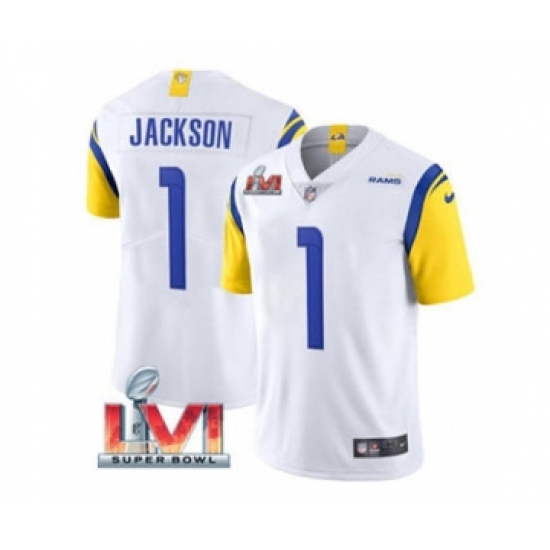 Men's Los Angeles Rams #1 Desean Jackson White 2022 Super Bowl LVI Vapor Limited Stitched Jersey
