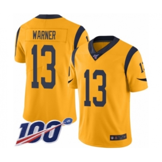Men's Los Angeles Rams #13 Kurt Warner Limited Gold Rush Vapor Untouchable 100th Season Football Jersey