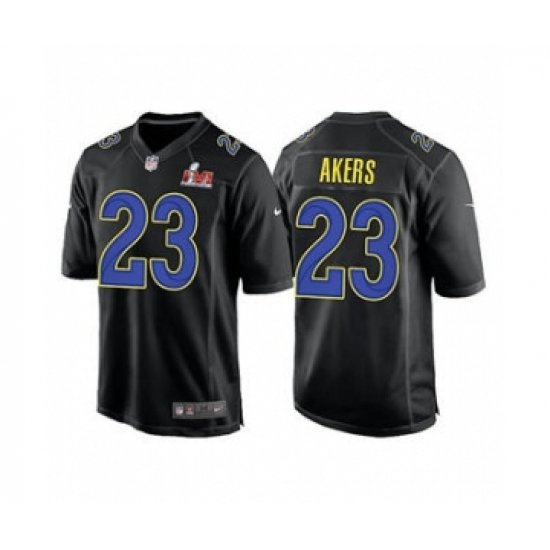 Men's Los Angeles Rams #23 Cam Akers Black 2022 Super Bowl LVI Game Stitched Jersey