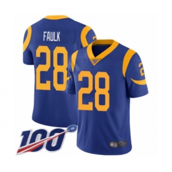 >Men's Los Angeles Rams #28 Marshall Faulk Royal Blue Alternate Vapor Untouchable Limited Player 100th Season Football Jersey