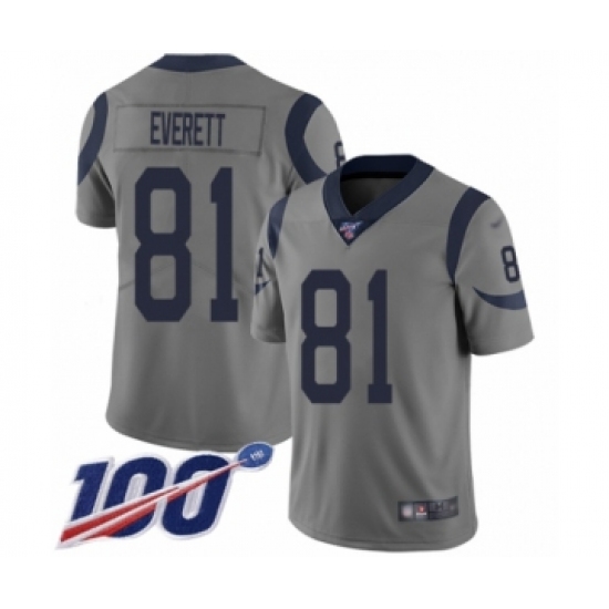 >Men's Los Angeles Rams #81 Gerald Everett Limited Gray Inverted Legend 100th Season Football Jersey