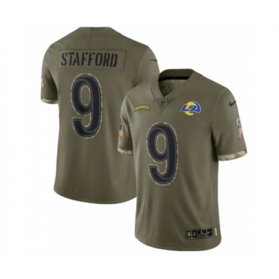 >Men's Los Angeles Rams #9 Matthew Stafford 2022 Olive Salute To Service Limited Stitched Jersey