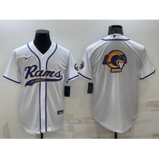 Men's Los Angeles Rams White Team Big Logo With Patch Cool Base Stitched Baseball Jersey