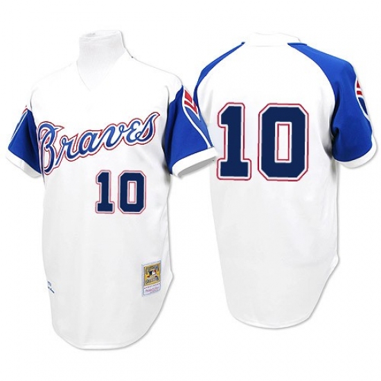 Men's Majestic Atlanta Braves #10 Chipper Jones Authentic White 1974 Throwback MLB Jersey