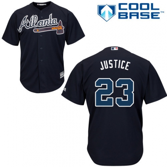 Home>MLB>Atlanta Braves>David Justice>Men's Majestic Atlanta Braves #23 David Justice Replica Blue Alternate Road Cool Base MLB Jersey