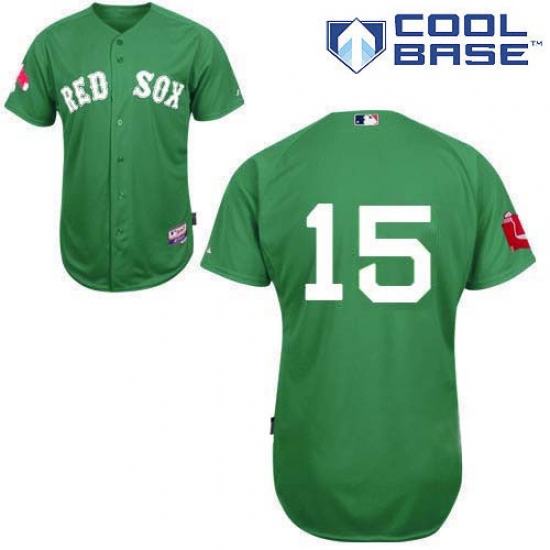 Men's Majestic Boston Red Sox #15 Dustin Pedroia Replica Green Cool Base MLB Jersey