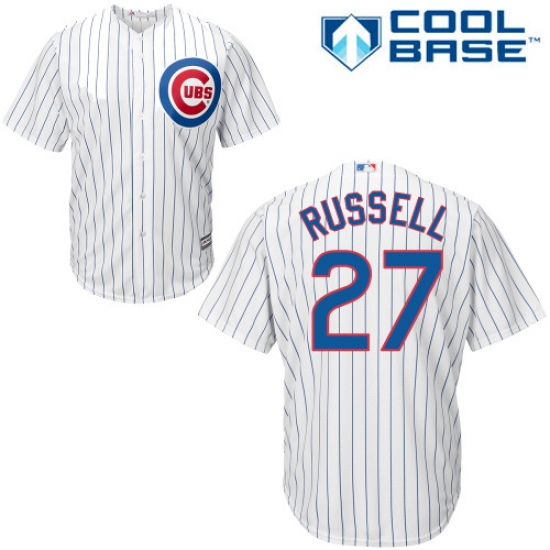 Home>MLB>Chicago Cubs>Addison Russell>Men's Majestic Chicago Cubs #27 Addison Russell Replica White Home Cool Base MLB Jersey