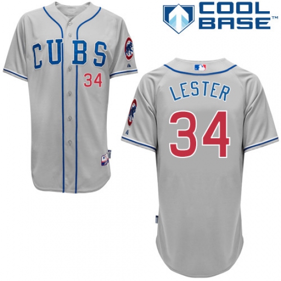 Home>MLB>Chicago Cubs>Jon Lester>Men's Majestic Chicago Cubs #34 Jon Lester Authentic Grey Alternate Road Cool Base MLB Jersey