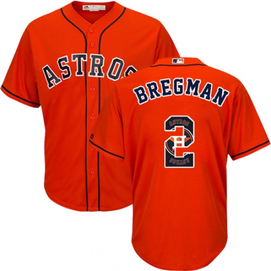 Home>MLB>Houston Astros>Alex Bregman>Men's Majestic Houston Astros #2 Alex Bregman Authentic Orange Team Logo Fashion Cool Base MLB Jersey