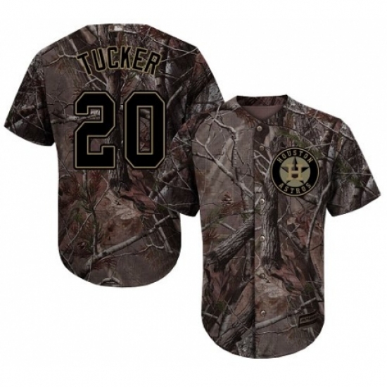 >Men's Majestic Houston Astros #20 Preston Tucker Authentic Camo Realtree Collection Flex Base MLB Jersey