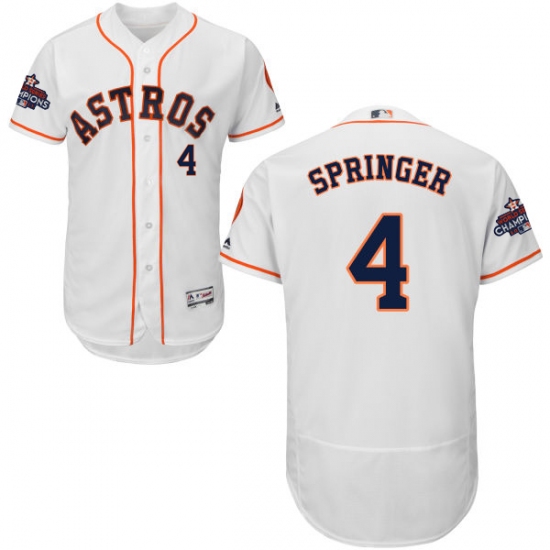 Home>MLB>Houston Astros>George Springer>Men's Majestic Houston Astros #4 George Springer Authentic White Home 2017 World Series Champions Flex Base MLB Jersey