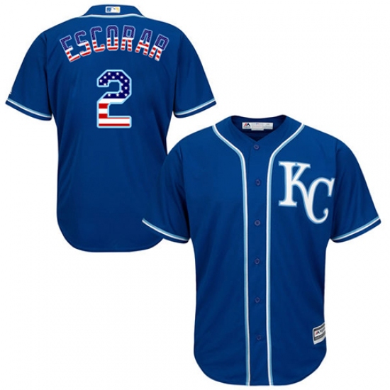 Home>MLB>Kansas City Royals>Alcides Escobar>Men's Majestic Kansas City Royals #2 Alcides Escobar Replica Royal Blue USA Flag Fashion MLB Jersey