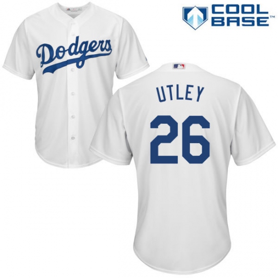 Home>MLB>Los Angeles Dodgers>Chase Utley>Men's Majestic Los Angeles Dodgers #26 Chase Utley Replica White Home Cool Base MLB Jersey