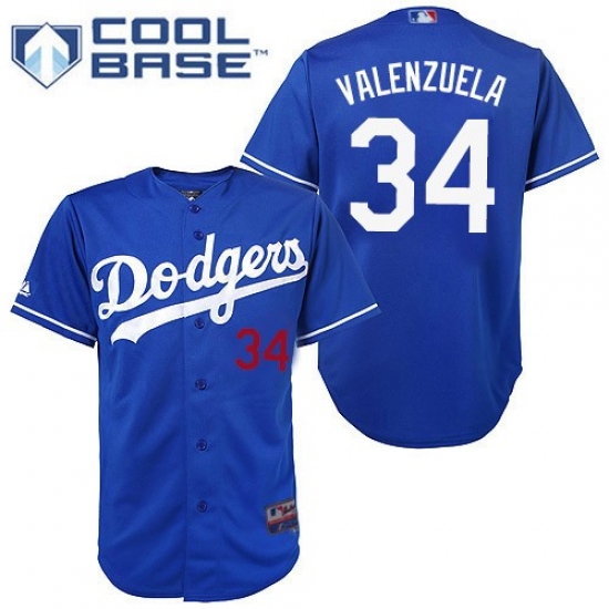 Home>MLB>Los Angeles Dodgers>Fernando Valenzuela>Men's Majestic Los Angeles Dodgers #34 Fernando Valenzuela Replica Royal Blue Cool Base MLB Jersey