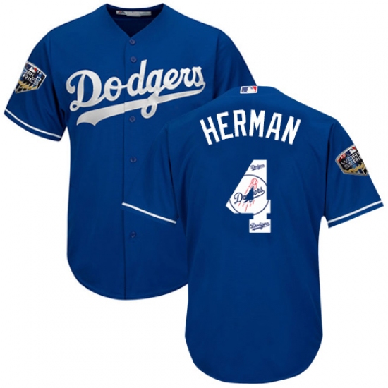 Men's Majestic Los Angeles Dodgers #4 Babe Herman Authentic Royal Blue Team Logo Fashion Cool Base 2018 World Series MLB Jersey
