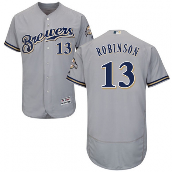 Men's Majestic Milwaukee Brewers #13 Glenn Robinson Grey Flexbase Authentic Collection MLB Jersey