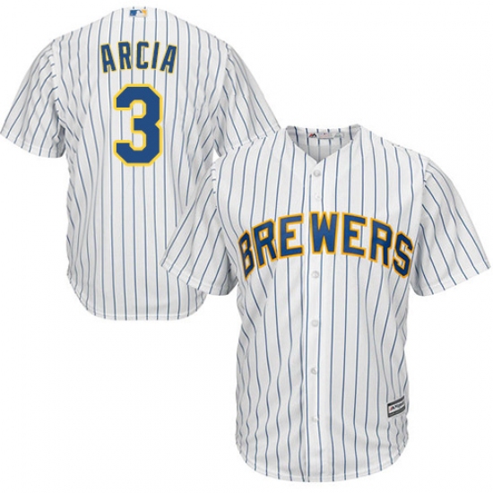 Men's Majestic Milwaukee Brewers #3 Orlando Arcia Replica White Alternate Cool Base MLB Jersey