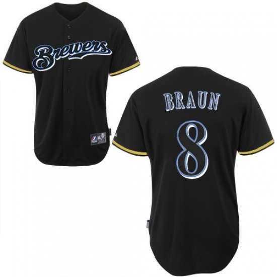 Men's Majestic Milwaukee Brewers #8 Ryan Braun Authentic Black Fashion MLB Jersey