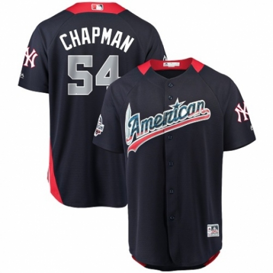 >Men's Majestic New York Yankees #54 Aroldis Chapman Game Navy Blue American League 2018 MLB All-Star MLB Jersey