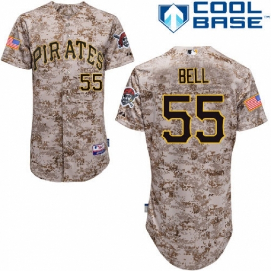 >Men's Majestic Pittsburgh Pirates #55 Josh Bell Authentic Camo Alternate Cool Base MLB Jersey