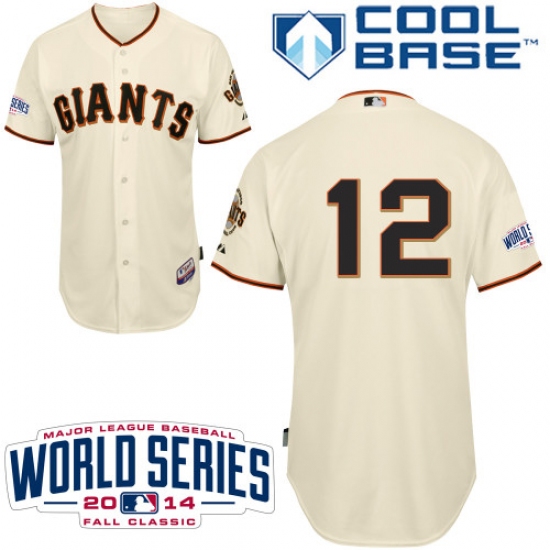 Men's Majestic San Francisco Giants #12 Joe Panik Authentic Cream Home Cool Base w/2014 World Series Patch MLB Jersey