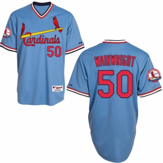Men's Majestic St. Louis Cardinals #50 Adam Wainwright Authentic Blue 1982 Turn Back The Clock MLB Jersey