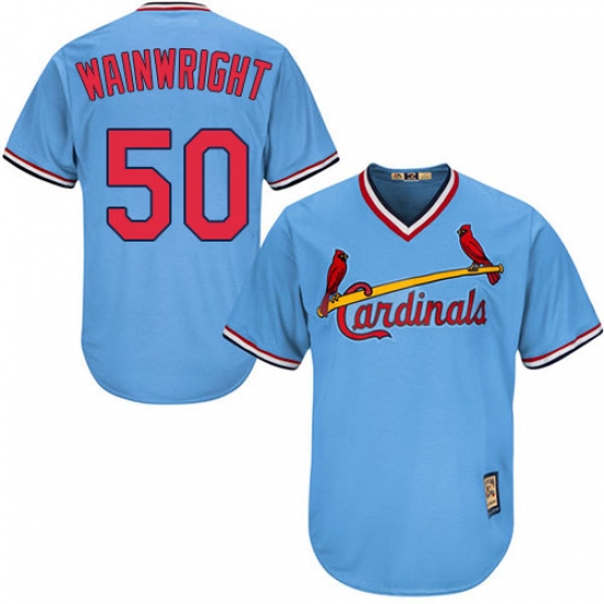 Men's Majestic St. Louis Cardinals #50 Adam Wainwright Replica Light Blue Cooperstown MLB Jersey