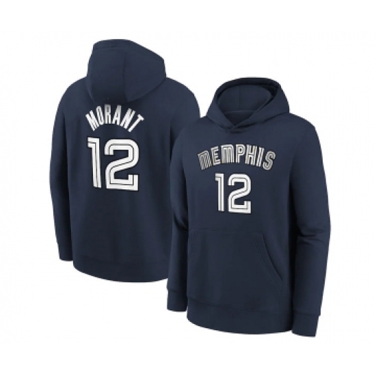 Men's Memphis Grizzlies #12 Ja Morant 2021 Navy Pullover Basketball Hoodie