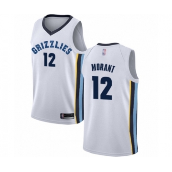 >Men's Memphis Grizzlies #12 Ja Morant Authentic White Basketball Jersey - Association Edition