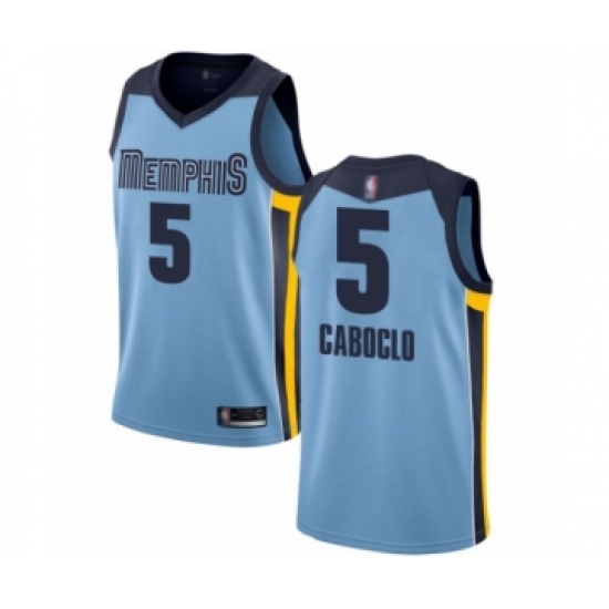 >Men's Memphis Grizzlies #5 Bruno Caboclo Authentic Light Blue Basketball Jersey Statement Edition