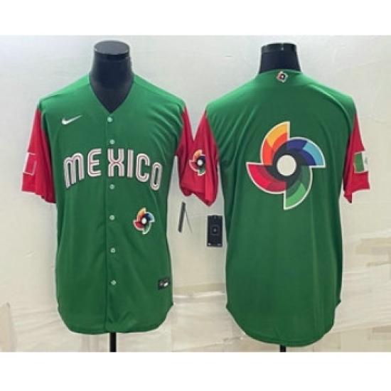 >Men's Mexico Baseball 2023 Green World Big Logo Classic Stitched Jerseys