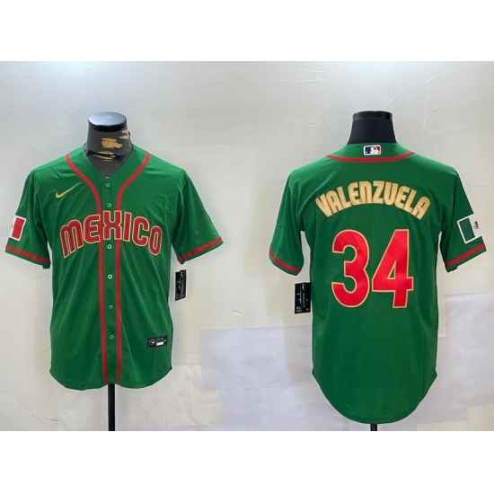 >Men's Mexico Baseball #34 Fernando Valenzuela 2023 Green Gold World Classic Stitched Jersey