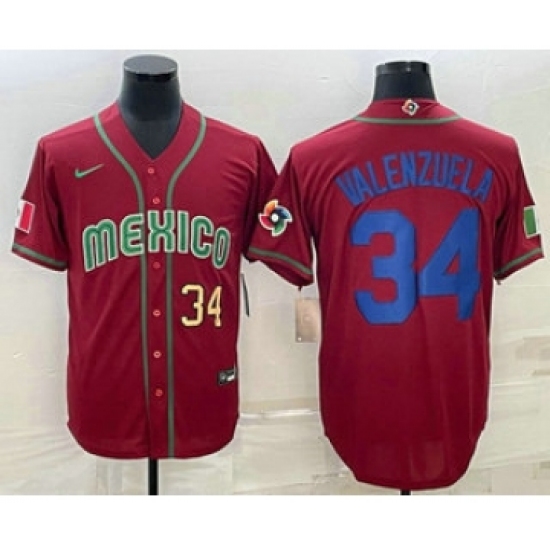 Men's Mexico Baseball #34 Fernando Valenzuela Number 2023 Red Blue World Baseball Classic Stitched Jersey2