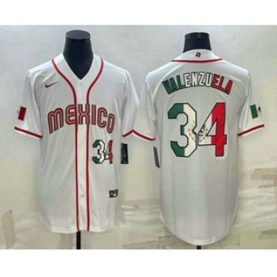 Men's Mexico Baseball #34 Fernando Valenzuela Number 2023 White World Classic Stitched Jersey