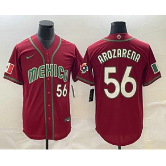 Men's Mexico Baseball #56 Randy Arozarena Number 2023 Red World Classic Stitched Jersey