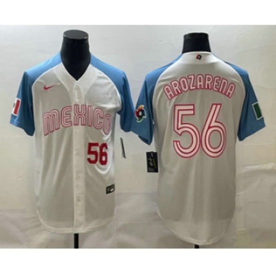 Men's Mexico Baseball #56 Randy Arozarena Number 2023 White Blue World Classic Stitched Jersey1